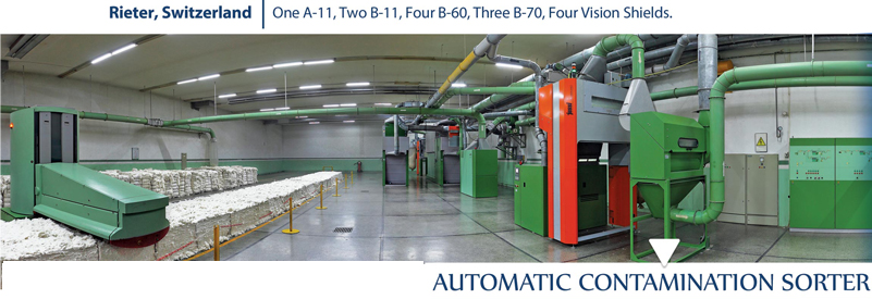 Our Blow room is equipped with state of the art computerized vision shield which automatically detects and removes contamination from cotton at an early stage, before it spreads over a large scale or turns into bits of fibers undetectable by foreign fiber cleaners on the cone winders. Ultra fast color line cameras with digital image processing catch the colors of the passing cotton tufts and transfer the collected data to the image processing unit. The high resolution and photorealistic real color processing guarantee the utmost differentiation between cotton and contamination. The pneumatic ejection eliminates the detected contamination with the highest reliability. Thus it improves the quality of yarn in term of lower contamination which is very important for high quality fabric |