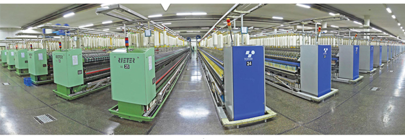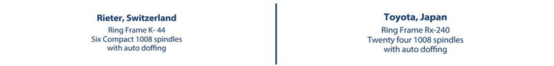 | Ring department is equipped with state of the art Reiter compact ring frame K-44 and Toyota made RX-240 with complete auto doffing system. Fleece angle prevents fluff and provides excellent yarn twisting resulting in high quality yarn. A high-precision coil spring maintains a consistent balanced pressure to produce high quality yarn. The automatic doffer works quickly, reliably and precisely. |